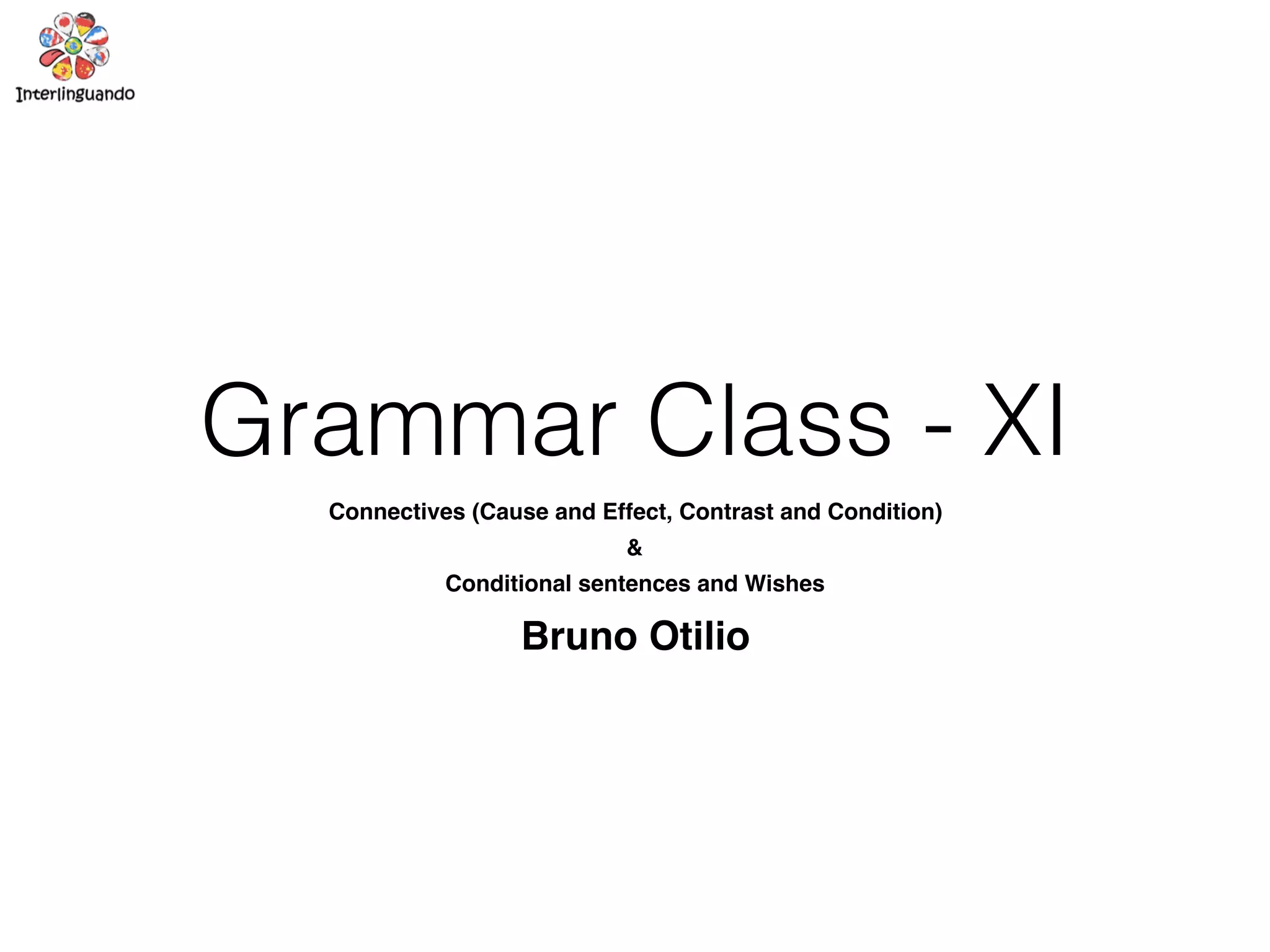 This document covers connectives that indicate cause and effect, contrast, and condition. It discusses zero, first, second, and third conditionals and their structures. Zero conditionals express general truths using if + present simple, present simple. First conditionals express possible future events using if + present simple, will + infinitive. Second conditionals express unlikely present or future events using if + past simple, would + infinitive. Third conditionals express imaginary past events using if + past perfect, would + have + past participle. The document concludes by congratulating someone on completing a grammar course that covered topics from basic to advanced English grammar.