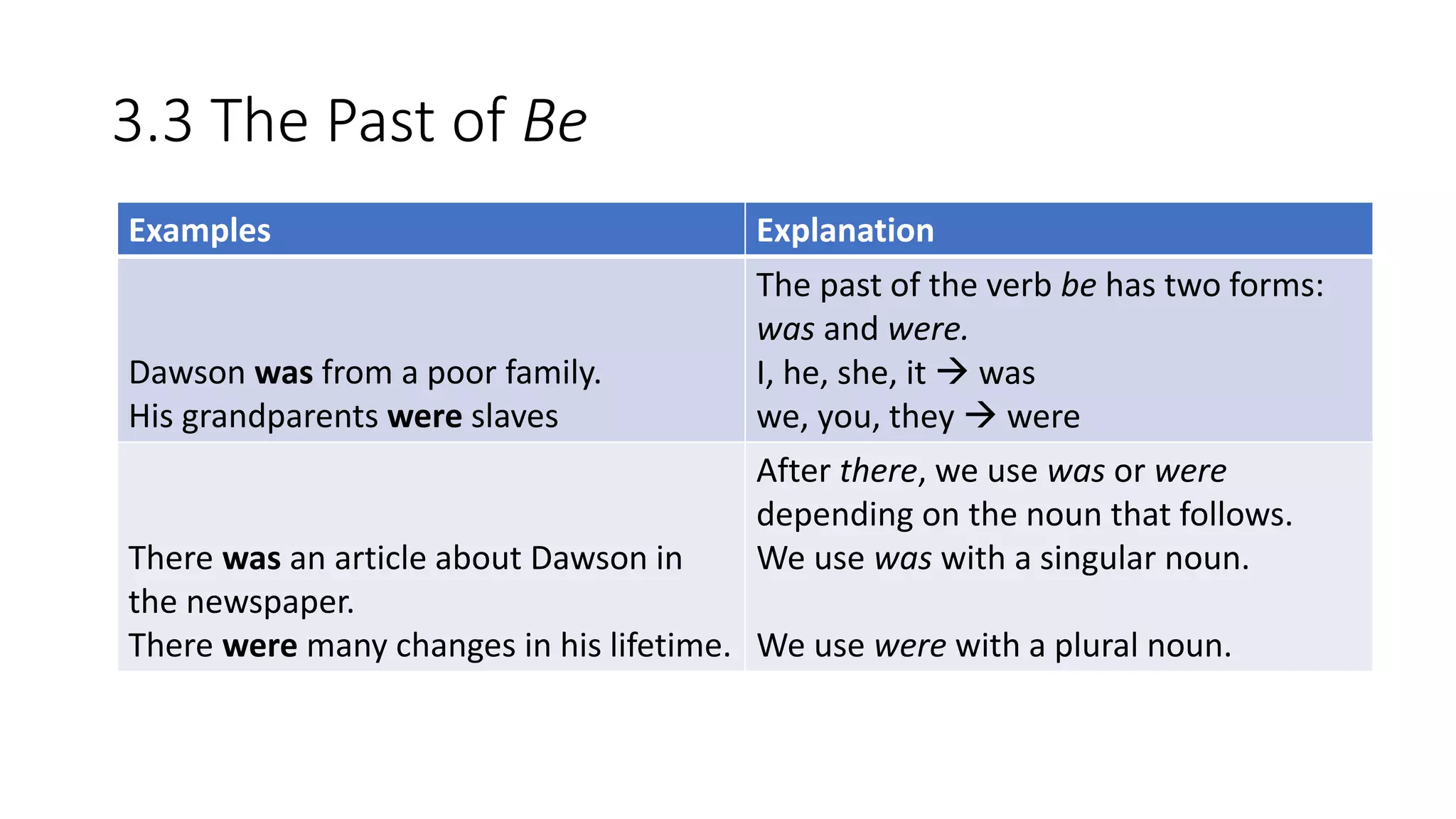 The document discusses the past tense forms of the verb "to be". It notes that the past tense of "I, he, she, it" is "was" while the past tense of "we, you, they" is "were". Examples are provided to illustrate how to use "was" and "were" in statements, yes/no questions, and wh-questions. The document also covers how to form negatives using "wasn't" and "weren't".