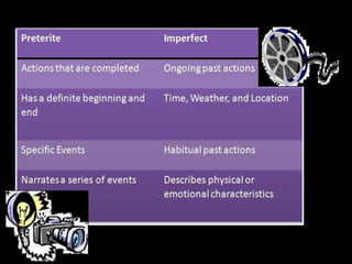 - Verbs like gustar, comparatives, superlatives, and connecting words