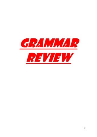 1. The document summarizes basic grammar rules in English including sentence structure, parts of speech, count and non-count nouns, articles, and other grammar topics.