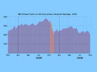Il documento analizza il periodo della Grande Depressione, evidenziando l'influenza dei presidenti repubblicani e la crescita economica iniziale che culminò in un crollo del mercato azionario. La crisi portò a gravi conseguenze sociali ed economiche, tra cui la nascita delle 'Hoovervilles' e il Dust Bowl. L'elezione di Franklin D. Roosevelt segnò un cambiamento nell'approccio economico, introducendo politiche chiave per la ripresa.