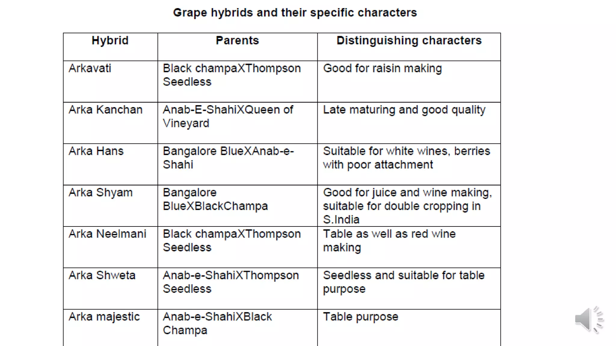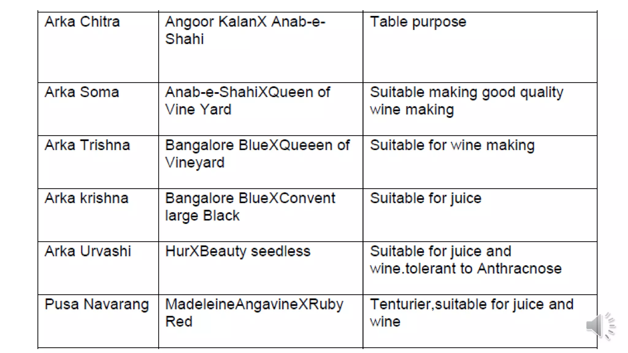 The document outlines the complete syllabus for horticulture, focusing on grape cultivation in India, with details on varieties, climate requirements, propagation methods, and training systems. Grapes, primarily from the species Vitis vinifera, are significant as both table and wine fruits, with various commercial varieties cultivated, including Thompson seedless and Anab-e-Shahi. The document also discusses the ideal planting practices, spacing, and advantages and disadvantages of different training systems used in grape farming.