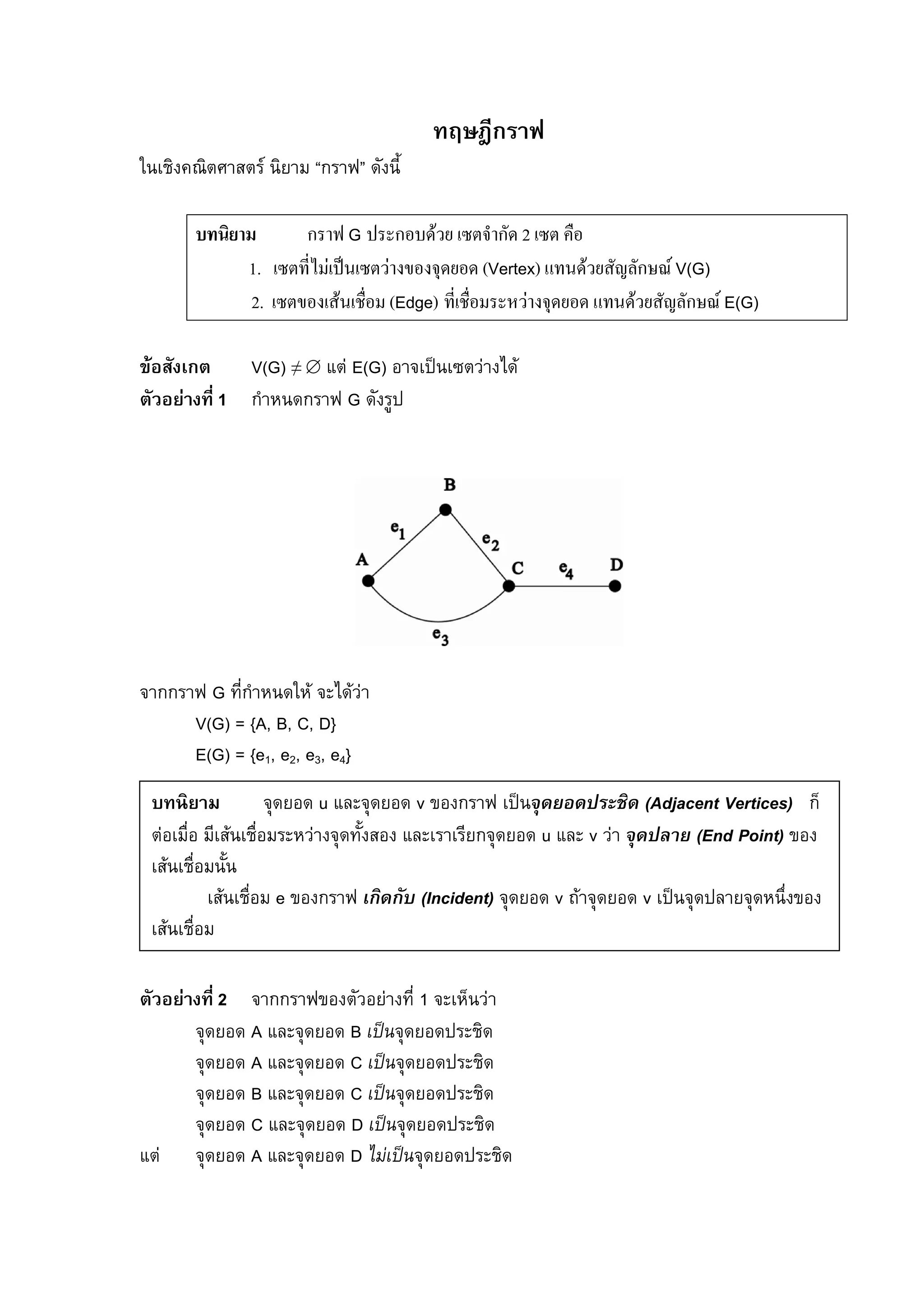 4. ถา T เปนตนไมที่มีจํานวนจุดยอดอยางนอย 2 จุด แลว กราฟ T จะมีดีกรี 1 อยางนอย 2