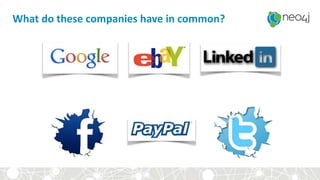 This document provides an introduction to graph databases and their advantages over relational and NoSQL databases for modeling connected data. It discusses how graph databases can unlock value from data relationships in areas like recommendations, fraud detection, and identity management. The document explains that graph databases allow flexible modeling of nodes and relationships, powerful graph queries, and the ability to easily add new types of data over time. It presents the example of Neo4j as the leading graph database and discusses how early adopters were able to gain competitive advantages through new applications and insights leveraging their connected data in a graph model.