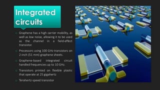Graphene has great potential applications but also downsides that scientists are working to overcome. It could significantly improve technologies if used in coming years, as graphene's advantages outweigh the challenges, and scientists work daily to make its benefits a reality by further utilizing its extraordinary properties practically.