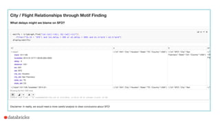 GraphFrames is a library built on Apache Spark that simplifies graph processing by leveraging DataFrames for higher-level APIs and optimizations. It offers capabilities like motif finding, graph algorithms, and integrates seamlessly with Spark's existing functionalities while allowing for the use of Java, Python, and Scala. The document highlights its architecture, use cases, and a roadmap for future enhancements and community contributions.