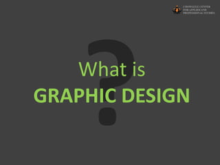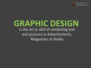 Graphic design is the art of combining text and visuals to convey messages effectively through various media. It involves understanding principles such as contrast, hierarchy, and balance while emphasizing the importance of creativity and problem-solving. To succeed in graphic design, one must have skills in communication, research, and software tools, alongside personal attributes like determination, imagination, and the ability to take criticism.