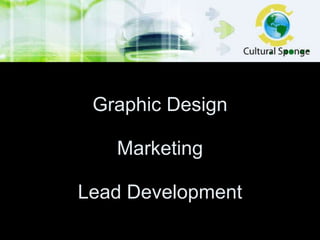 The document describes the graphic design and marketing services offered by Heather Brown through her company Cultural Sponge. These include strategic marketing plans, advertising campaigns, branding, logo design, websites, publications and other promotional materials. Examples are provided of branding projects Cultural Sponge has completed for various clients, showing logo designs, business cards, brochures, posters, and websites.