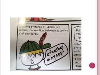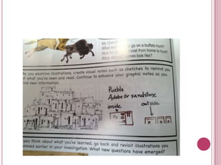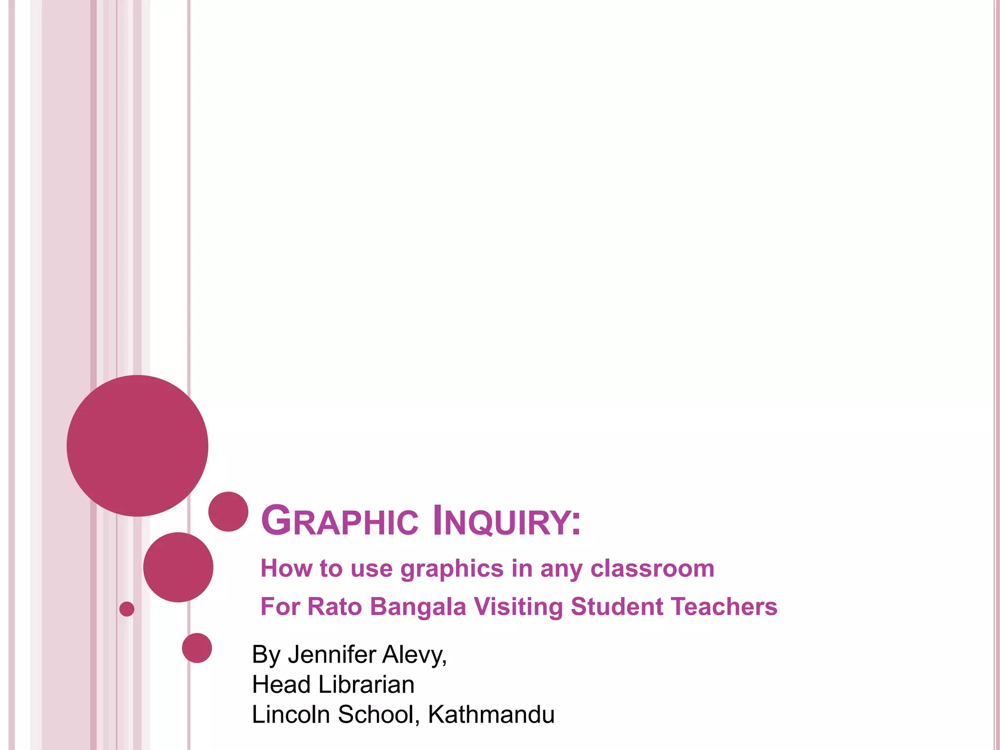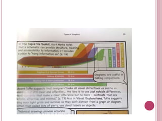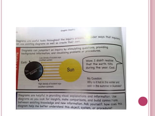 This document provides guidance on using graphics in the classroom. It discusses visual literacy and different types of graphics including charts and graphs, diagrams, illustrations, maps, organizers, images, and symbols. For each graphic type, it provides examples and discusses how they can be used in the inquiry process, including for questioning, assimilating information, and reflecting on learning. The overall message is that graphics are powerful tools to support visual learning and the inquiry process.