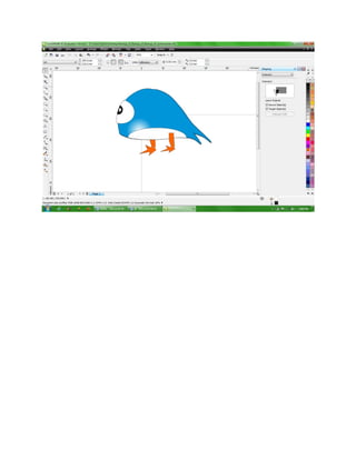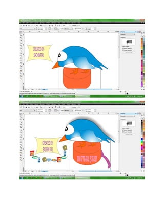 1. The document describes how to create a quirky Twitter bird in Corel Draw using various drawing tools.