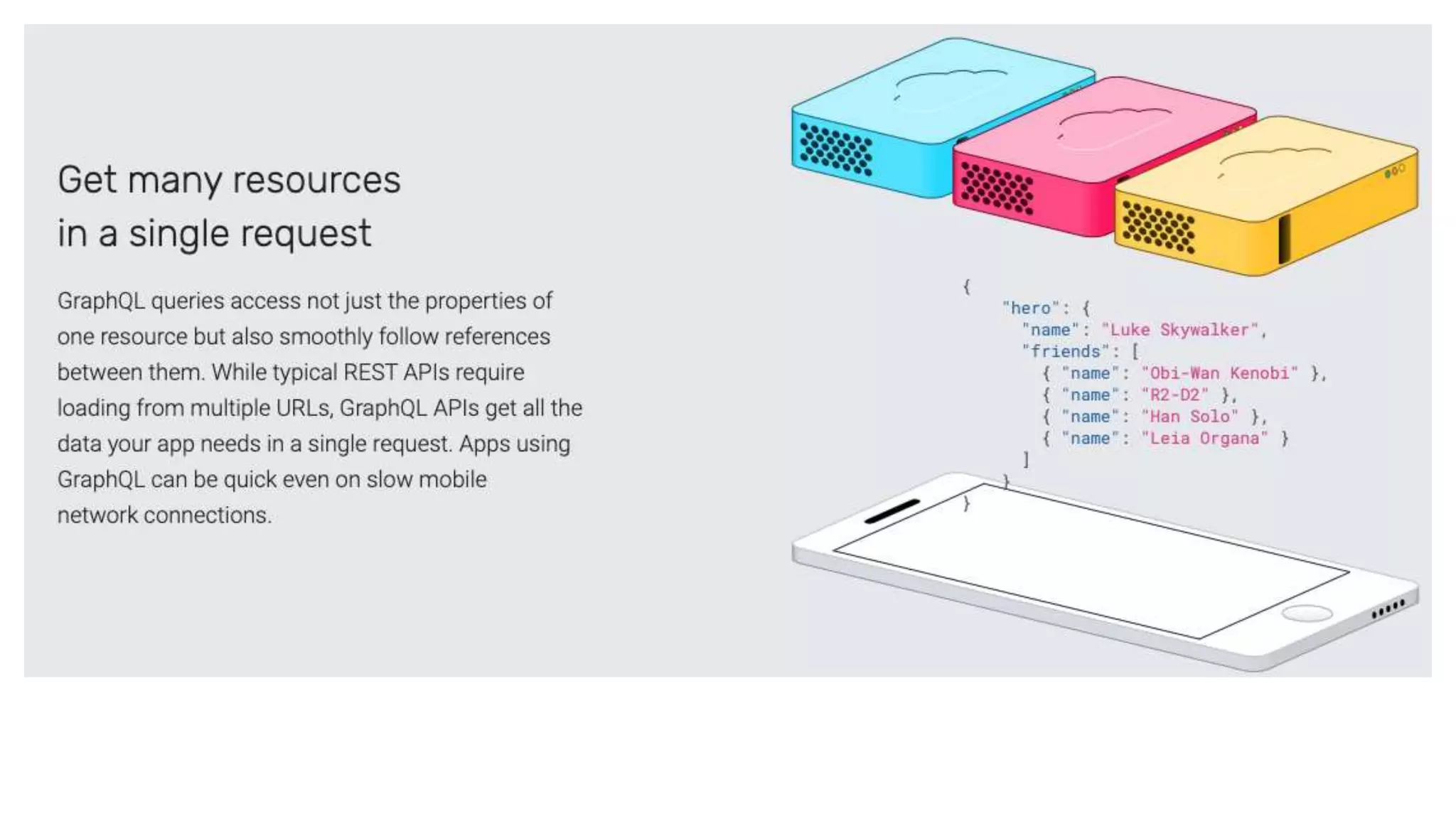 GraphQL is a query language for APIs that allows flexible querying of data from a server. It was originally created by Facebook in 2012 and open sourced in 2015. Some key benefits of GraphQL include allowing apps to control the specific data received from servers instead of receiving all possible data like with REST APIs, and GraphQL queries mirroring the response structure. GraphQL schemas define query and mutation parameters as well as return data types.