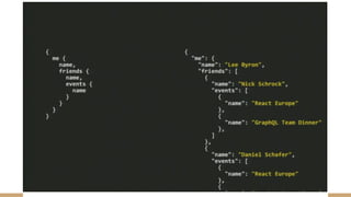 GraphQL is a query language developed by Facebook in 2012 that allows clients to specify their data requirements, resulting in tailored responses. It features a strong, application-specific type system and is designed to be transport-independent, enabling use with various communication protocols. The language encourages a product-centric approach, allowing developers to build applications efficiently without extensive documentation.