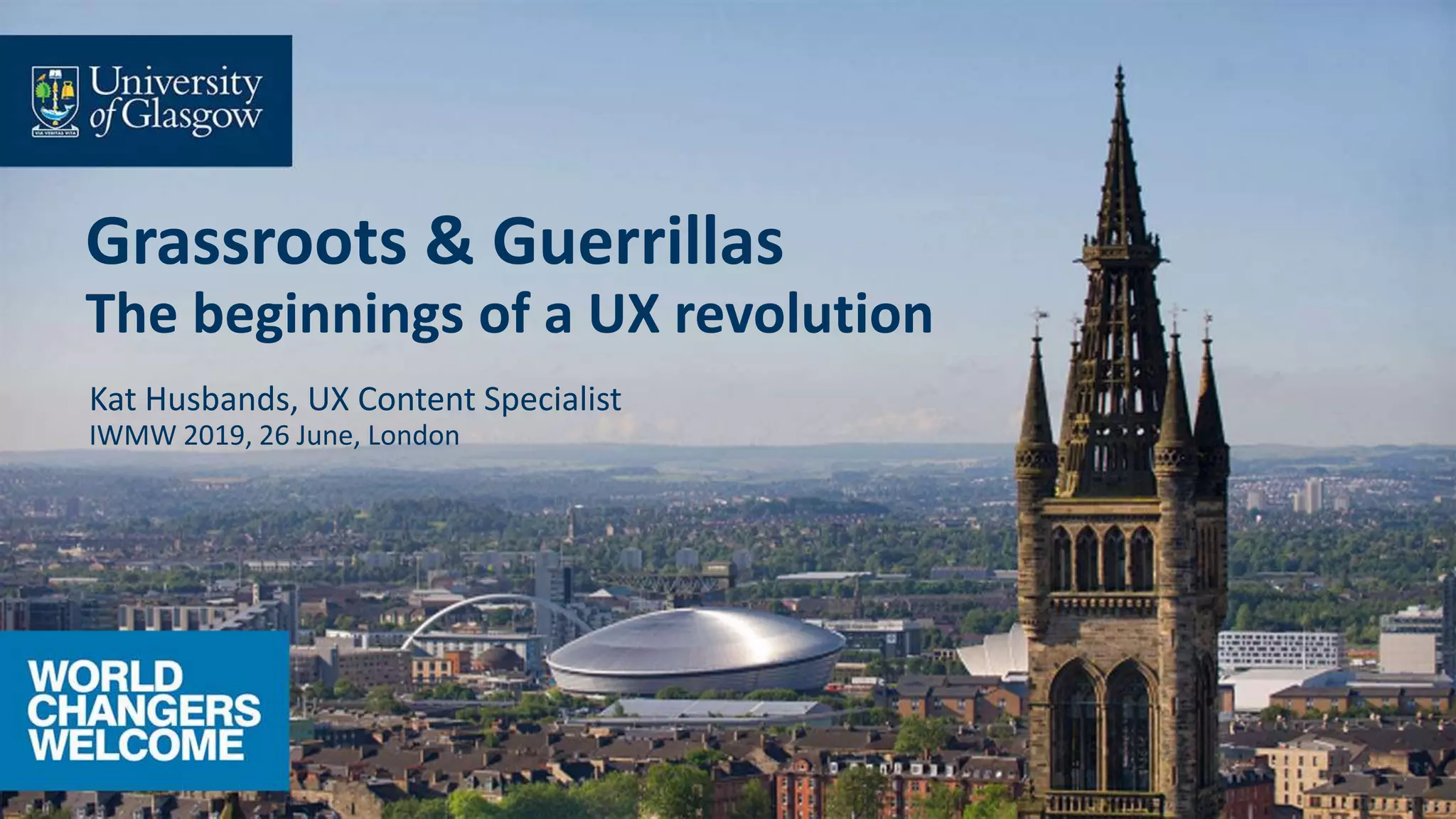 This document summarizes Kat Husbands' presentation on the beginnings of a UX revolution at the University of Glasgow. It describes how over time, UX has progressed from being unrecognized to becoming more embedded in the organization's culture and practices. It provides examples of projects where UX methods like surveys, testing, and workshops were used to redesign pages like the staff homepage and student printing pages. Feedback shows these projects improved users' experiences. The presentation urges others to start small with UX work, iterate based on testing, and communicate results to continue progressing UX maturity within their organizations.