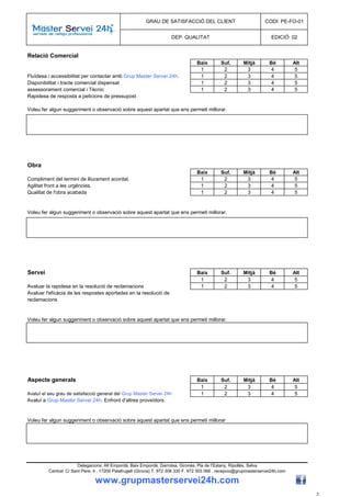 Avaluï el seu grau de satisfacció general del Grup Master Servei 24h 1 2 3 4 5