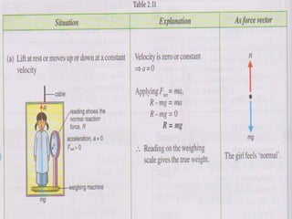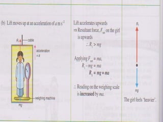 1. A box of mass 1.6 kg is suspended in a lift and its readings are taken at different lift accelerations. When stationary, the reading is 16N. When accelerating up at 2m/s^2, the reading is 19.2N. When accelerating down at 3m/s^2, the reading is 11.2N.