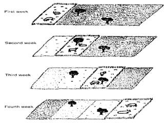 This document discusses various grazing systems and management techniques. It begins by defining grazing and describing two main types: grazing by herbivores and grazing as an agricultural method. It then outlines 17 different grazing systems including continuous grazing, simple rotational grazing, intensive rotational grazing, deferred rotation, rest rotation, controlled grazing, strip grazing, creep grazing, forward grazing, year-round grazing, mixed species grazing, high intensity/low frequency grazing, short duration grazing, seasonal grazing, targeted grazing, patch-burn grazing, and mob grazing. It concludes by discussing grazing management techniques for controlling how, when and where livestock graze to maximize pasture quality and productivity while avoiding over or undergrazing.
