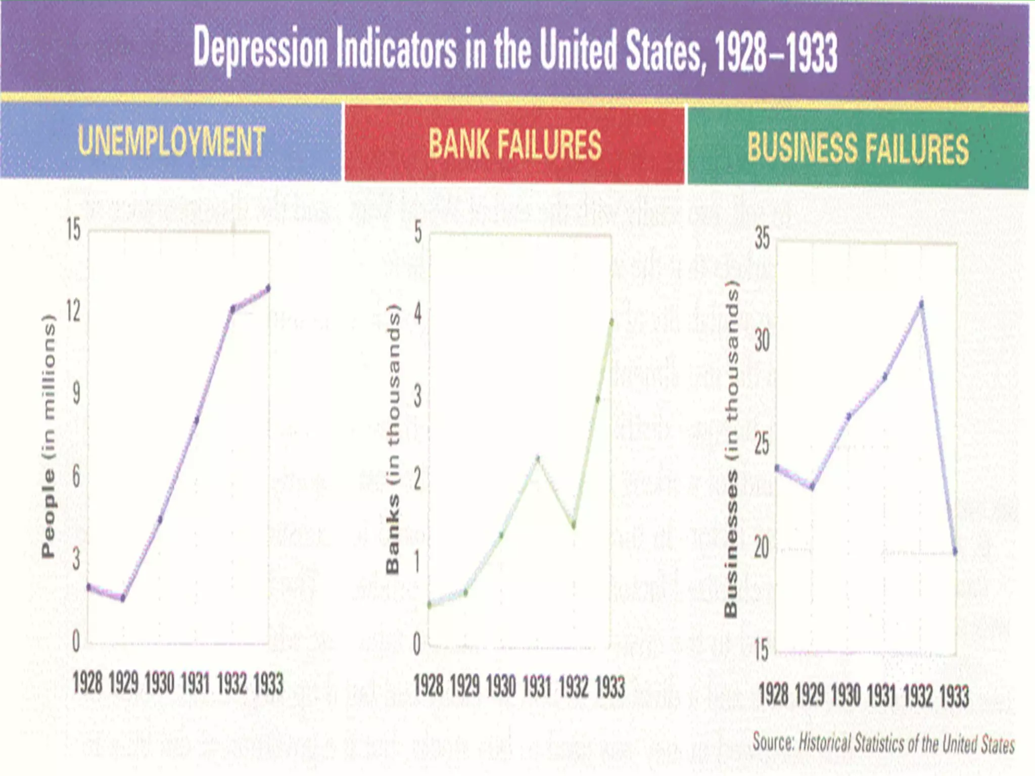 The Great Depression was caused by a combination of factors in the late 1920s and early 1930s, including unchecked speculation on credit, poor government policies, and a weak global economy recovering from World War I. The stock market crash of 1929 greatly exacerbated the economic crisis. As banks collapsed and millions lost their jobs, poverty and homelessness spread rapidly across the US. In response, President Franklin D. Roosevelt introduced his New Deal programs in the 1930s, which focused on relief, recovery, and reform through massive public works projects, the establishment of social security and financial regulations, and other initiatives aimed at revitalizing the economy. However, the Great Depression was not fully reversed until American involvement in World War II boosted industrial production.