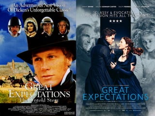 This document lists the main characters in Charles Dickens' novel Great Expectations including Philip Pirrip, better known as Pip, the orphaned protagonist, Joe Gargery who is Pip's brother-in-law, Mrs. Joe Gargery who is Pip's sister, Miss Havisham the jilted bride who raises Estella, Estella who becomes Pip's love interest, and The Convict who threatens Pip and is part of the mystery of the story.