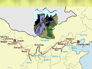 The Great Wall of China was originally built as separate defensive walls by different states to defend against invasions from the Huns in the north. Emperor Qin Shihuang connected these walls after unifying China to form the first "Great Wall". Sections have since been rebuilt and repaired. At over 4,500 miles long, the Great Wall winds across northern China and is listed as a UNESCO World Heritage Site, becoming a symbol of Chinese culture and one of its most popular tourist destinations.