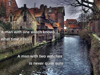 This document provides a collection of philosophical sayings and proverbs. It offers advice around being cautious but optimistic about time, focusing on future opportunities rather than past mistakes, treating people well at all times, avoiding unnecessary explanations especially to enemies, acting with courage in spite of fear, and taking responsibility for one's own growth and future.