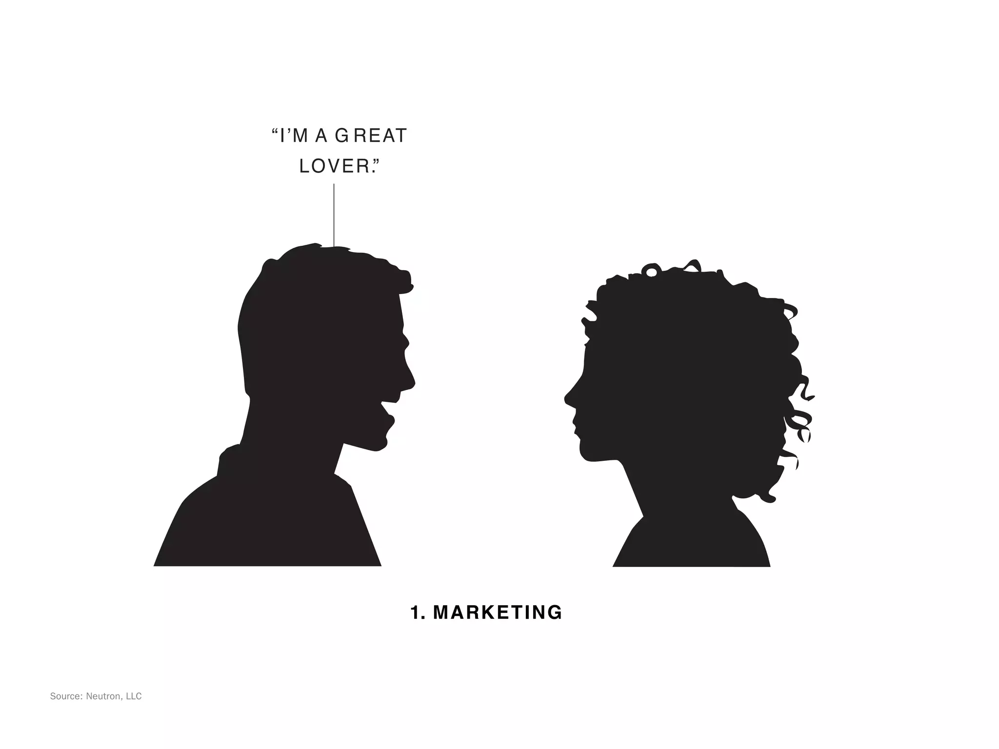 The document discusses 6 areas of marketing and branding strategy: 1) Marketing, 2) Telemarketing, 3) Public Relations, 4) Advertising, 5) Design, and 6) Branding. For each area, a quote is provided that repeats the phrase "I'm a great lover" or some variation, suggesting this phrase is being used to promote a product or service across different communication channels.