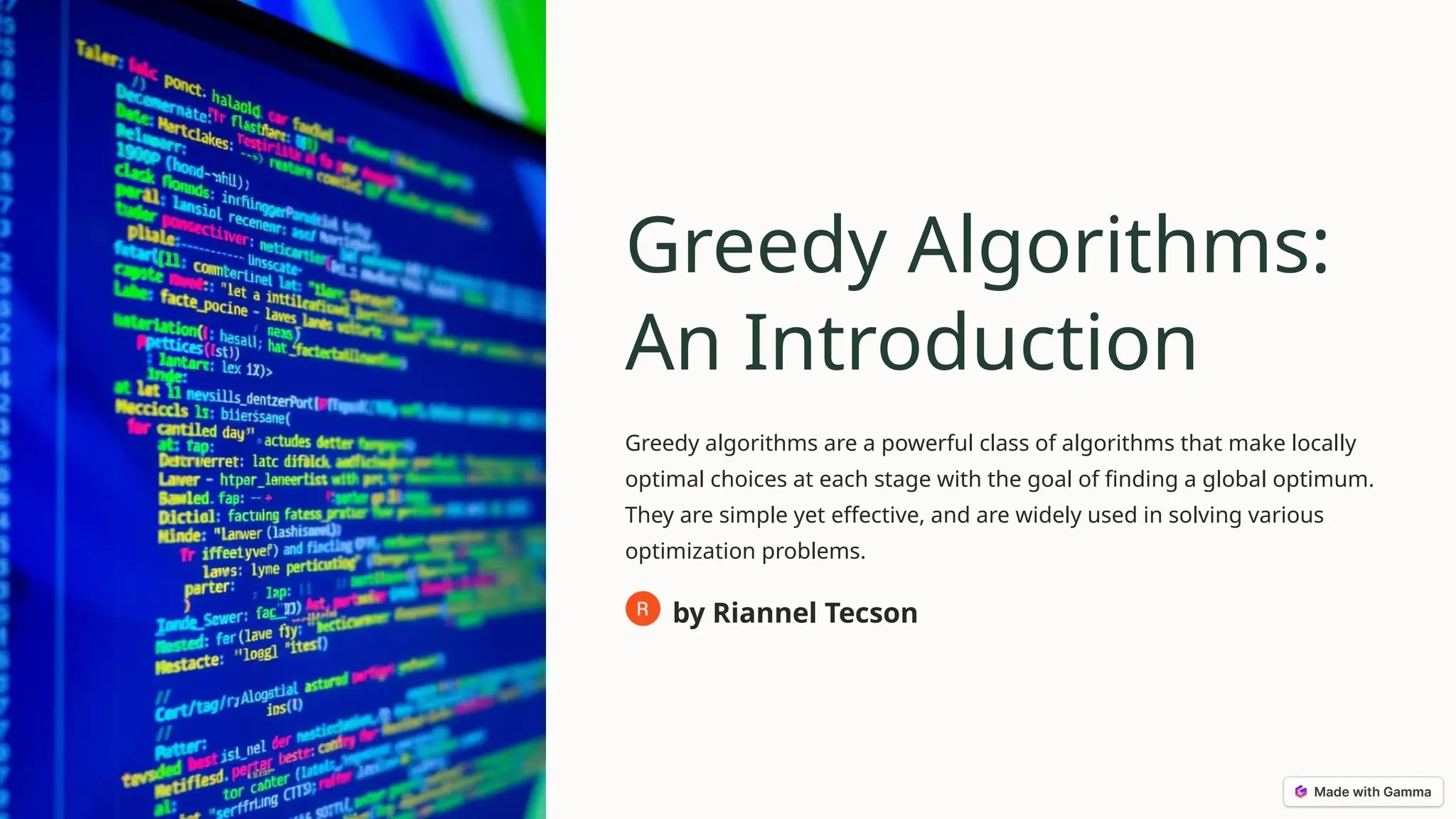 Greedy algorithms make locally optimal choices at each stage in order to find a global optimum, often used for optimization problems due to their simplicity and efficiency. They can lead to quick solutions, but may not guarantee optimal outcomes and can get stuck in local optima. The document discusses the characteristics, advantages, and disadvantages of greedy algorithms, along with examples like the coin change problem, knapsack problem, and Kruskal's algorithm.