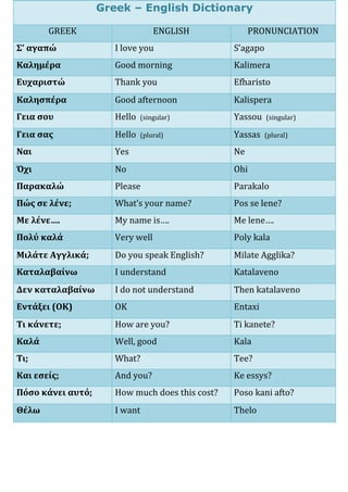Μιλάτε Αγγλικά; Do you speak English? Milate Agglika?