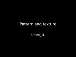The document discusses pattern and texture in art. It defines pattern as a repeated motif or unit, often arranged in a grid, while texture refers to the surface quality of an object and appeals to our sense of touch. There are two categories of artistic texture: tactile texture, which can be felt through architecture and sculpture, and visual or implied texture, which uses techniques like verisimilitude to create the illusion of texture on a flat surface.