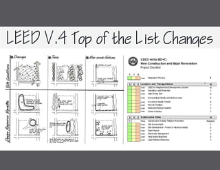 Many countries have developed unique sustainability rating tools for their building stocks, influenced by local climates and construction practices. LEED (Leadership in Energy and Environmental Design) is the most recognized green building rating system globally, applicable to various project types and aimed at promoting healthy, efficient, and sustainable buildings. The document outlines the different LEED rating systems and their implementation stages, focusing on site sustainability, water efficiency, energy management, material resources, and indoor environmental quality.