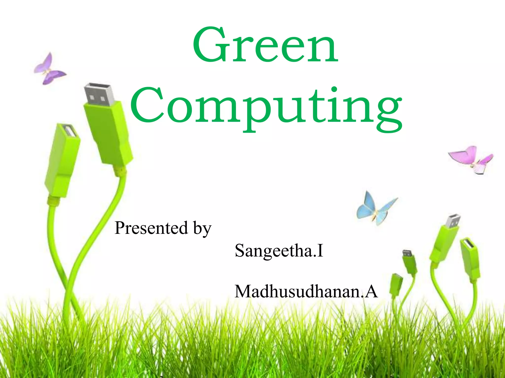 Green computing involves the environmentally sustainable and efficient use of computing resources. It includes designing and manufacturing computers with non-toxic, recyclable materials and maximizing energy efficiency during use and disposal. Adopting practices like turning off computers when not in use, using power saving modes, recycling electronics, and replacing toxic components can help reduce pollution and waste while still enabling computing. The overall goal of green computing is to reduce the environmental impact of computing through its entire lifecycle from creation to disposal.
