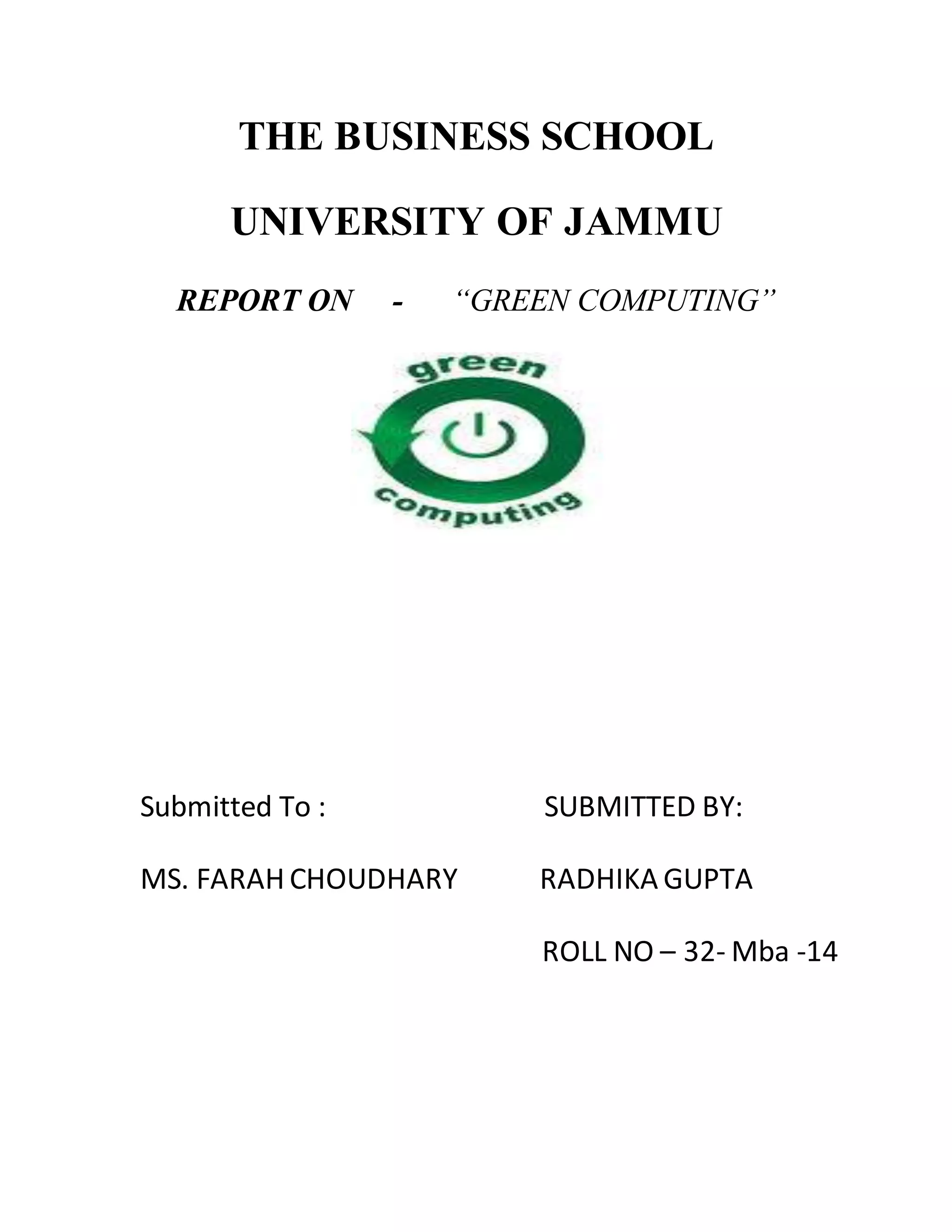 - It can be addressed through green use, green disposal, green design, and green manufacturing of computing systems and their components.