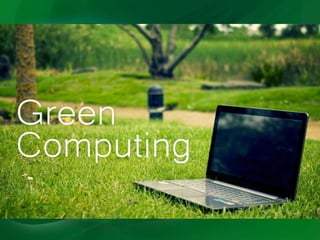 Green computing refers to the environmentally responsible use of computers and their resources, focusing on reducing energy consumption, waste, and carbon footprints. It encompasses strategies for energy-efficient design, manufacturing, and disposal of electronic devices, alongside recent innovations like energy-efficient PCs and virtualization. A comprehensive green strategy aims to provide sustainable computing solutions while minimizing environmental impact.