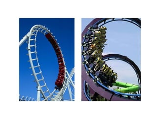 The principle ofa roller coaster : lifting the train to a very high place . Letting the train fall due to gravity . The geometry of the track is designed to meet desired acceleration ( fear factor ).