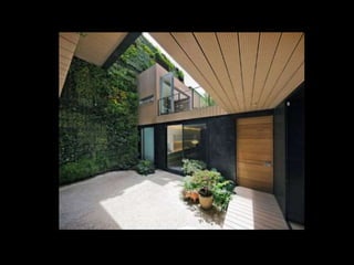 This document discusses green and sustainable interior design. It emphasizes using natural materials that are renewable, recycled, or biodegradable. Examples include wood, stone, jute and wool flooring and carpets. Eco-friendly paints with low or zero VOCs are recommended. The document also highlights the importance of energy and water conservation through features like daylighting, efficient HVAC and plumbing systems. Construction should utilize recycled materials and minimize waste. Overall the goal is to reduce environmental impact and respect the planet for future generations.