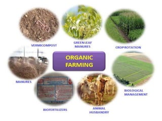 The document discusses the Green Revolution in India, which involved the introduction of high-yielding crop varieties, artificial fertilizers, and pesticides that significantly increased crop production. It notes that the Green Revolution was led by American biologist Norman Borlaug and describes some of the key aspects, including how fertilizers allowed for extra nutrient supply to crops, leading to higher yields. However, it also mentions that farmer suicides have increased after the Green Revolution. The document concludes by suggesting it is time to move toward an Organic Revolution that is chemical-free, organic, fair trade, and eco-friendly.