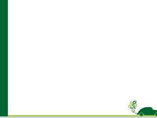 This document discusses green cars and their benefits. It defines green cars as vehicles that use alternative fuel sources like biodiesel, solar, or electricity rather than gasoline. Green cars decrease greenhouse gases, are cheaper to run and maintain, provide renewable energy sources, and reduce health and environmental risks. Hybrid vehicles, like the Toyota Prius, combine a gas engine with an electric motor to increase fuel efficiency. The Prius is one of the most fuel efficient and popular green car models. Electric vehicles, such as the Nissan Leaf, run solely on electricity from batteries and produce no direct emissions.