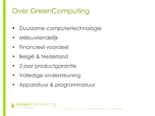 GreenComputing is wereldwijd het eerste bedrijf dat zich intensief inzet op het gebied van zuinige en milieuvriendelijke computers samen te stellen.