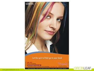 Green Leaf is a branding and advertising agency dedicated to helping clients effectively communicate their brand message and connect with customers. They offer a wide range of services including ad campaigns, graphic design, digital marketing, and event promotion. Their goal is to inspire desire in consumers and establish strong, lasting relationships between brands and their audiences.
