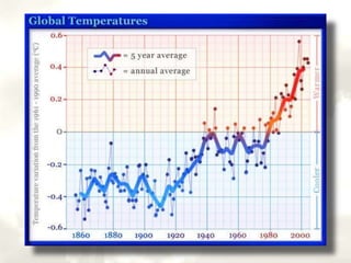 The greenhouse effect occurs when gases in the atmosphere trap heat from the sun, causing the surface temperature of the Earth to be warmer than it would be otherwise. Greenhouse gases like carbon dioxide and methane absorb and emit infrared radiation, trapping heat and leading to global warming. Increased concentrations of greenhouse gases from human activities are amplifying the greenhouse effect and further warming the atmosphere and Earth. Solutions to prevent additional global warming include increasing the use of renewable energy, reforestation, and conservation to reduce greenhouse gas emissions.