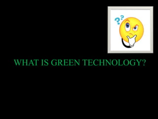 Green technology involves environmentally friendly innovations aimed at sustainable development, including various fields such as green chemistry, green energy, and nanotechnology. Notable applications include solar cells that convert light into electricity and organic light-emitting diodes (OLEDs) used in display technology. The overarching goal is to create products and processes that enhance environmental sustainability while minimizing negative impacts on health and resources.