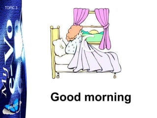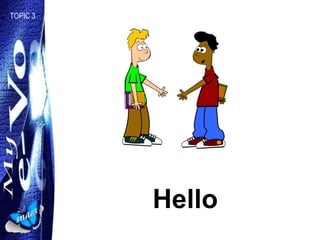 This short document contains greetings for different times of the day, including "Hello", "Good morning", "Good afternoon", and "Good evening", with each greeting on its own line under the heading "TOPIC 3".