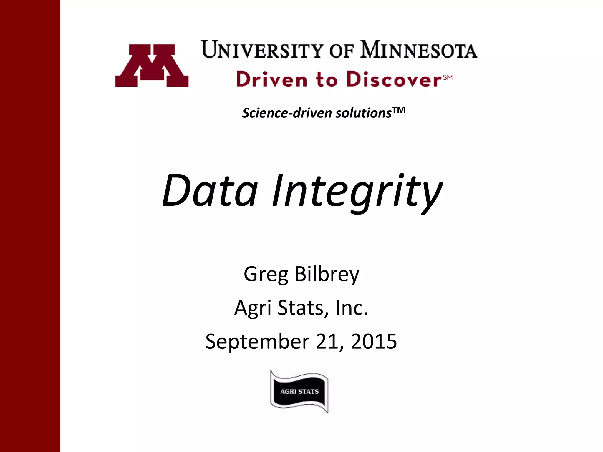 Agri Stats, Inc. focuses on data integrity procedures for the animal agriculture industry, offering benchmarking and auditing services for financial and production data among companies in North America and beyond. The document outlines formal data setup, monthly audits, and industry challenges faced in ensuring comparable data, emphasizing the importance of common calculations and defined procedures to maintain integrity. Effective benchmarking requires collaboration and commitment from all participating companies to standardize metrics and reporting methods.