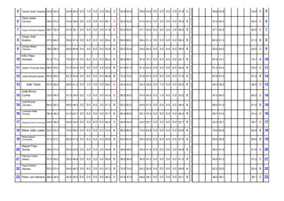 This document contains a class roster listing 25 students' names and their grades in three terms. For each term, it shows the students' scores on tests, participation, and other criteria, along with their final grade average and ranking within the class. The highest ranked student was Inês Filipa Honrado, who achieved first place in the third term with a grade of 74.7. Riacardo José Pereira achieved the top spot in the first and second terms with grades of 69.7 and 76.5, respectively. Overall grades ranged from the high 70s to the mid 30s.