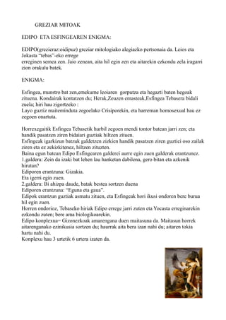 Baina egun batean Edipo Esfingearen galderei aurre egin zuen galderak erantzunez.