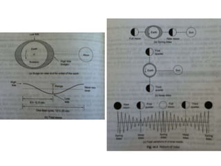 This document provides an overview of grid interfaced tidal power plants. It discusses the history of tidal power usage dating back to tidal mills in medieval times. The advantages of tidal power include being clean, non-polluting, and producing a constant, predictable supply of electricity. Disadvantages include tidal power only being economically feasible in locations with a tidal range of over 5 meters and potential environmental impacts. The document describes how tides are formed by the gravitational pull of the moon and sun. It explains the process of harnessing tidal power using tidal barrages, which involve constructing a dam across an estuary with sluice gates and turbines.