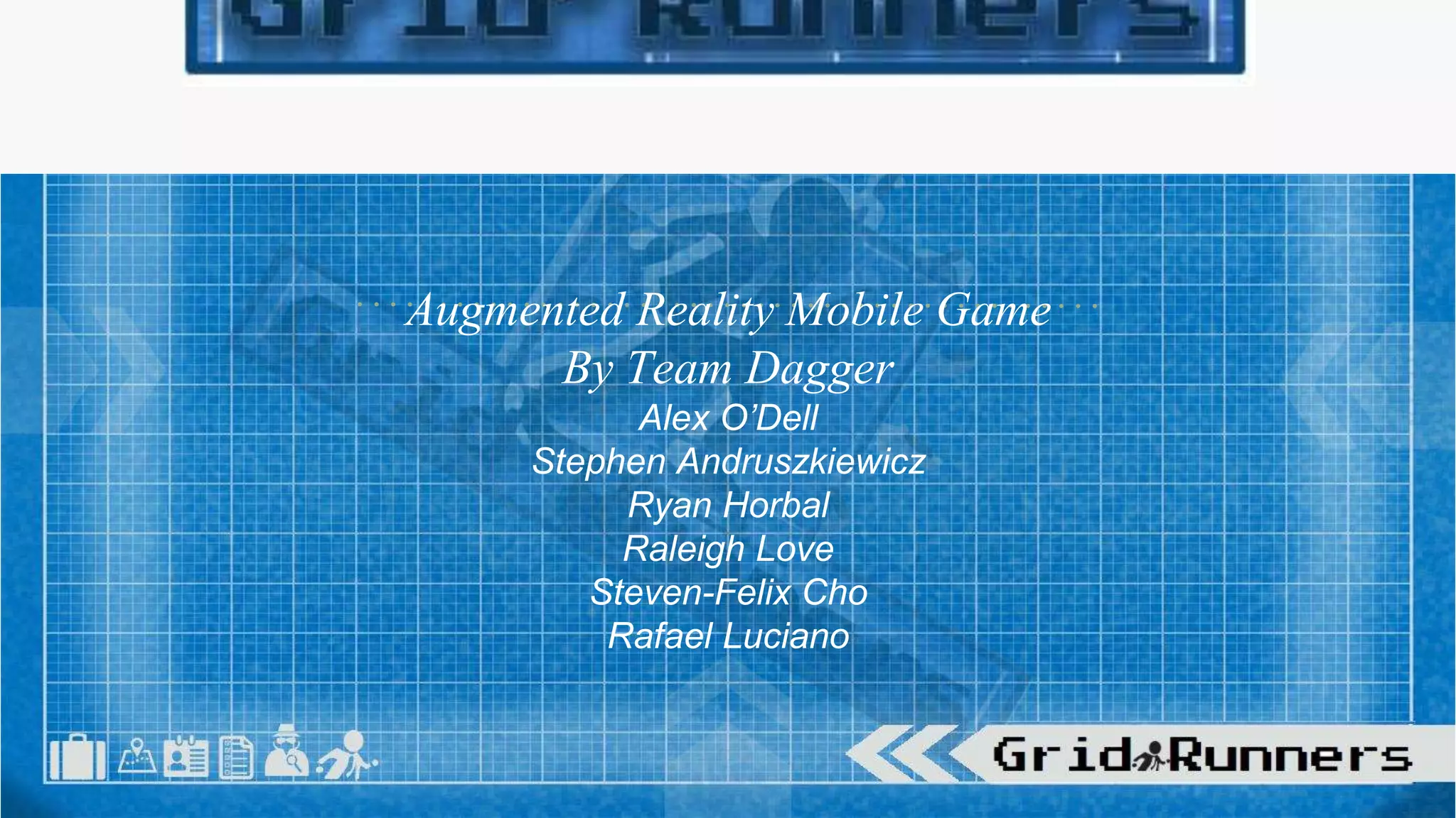The document describes an augmented reality mobile game called "Grid Runners" set in the year 2023. In the game's storyline, the government monitors everyone through a system called "The Grid". Players take on the roles of either "Grid Runners" who try to destroy The Grid by traveling back in time, or detectives from the ISIU who try to capture the Grid Runners. The document outlines various gameplay elements, such as factions, combat, exploration, and microtransactions. It also provides references used in the game's design.