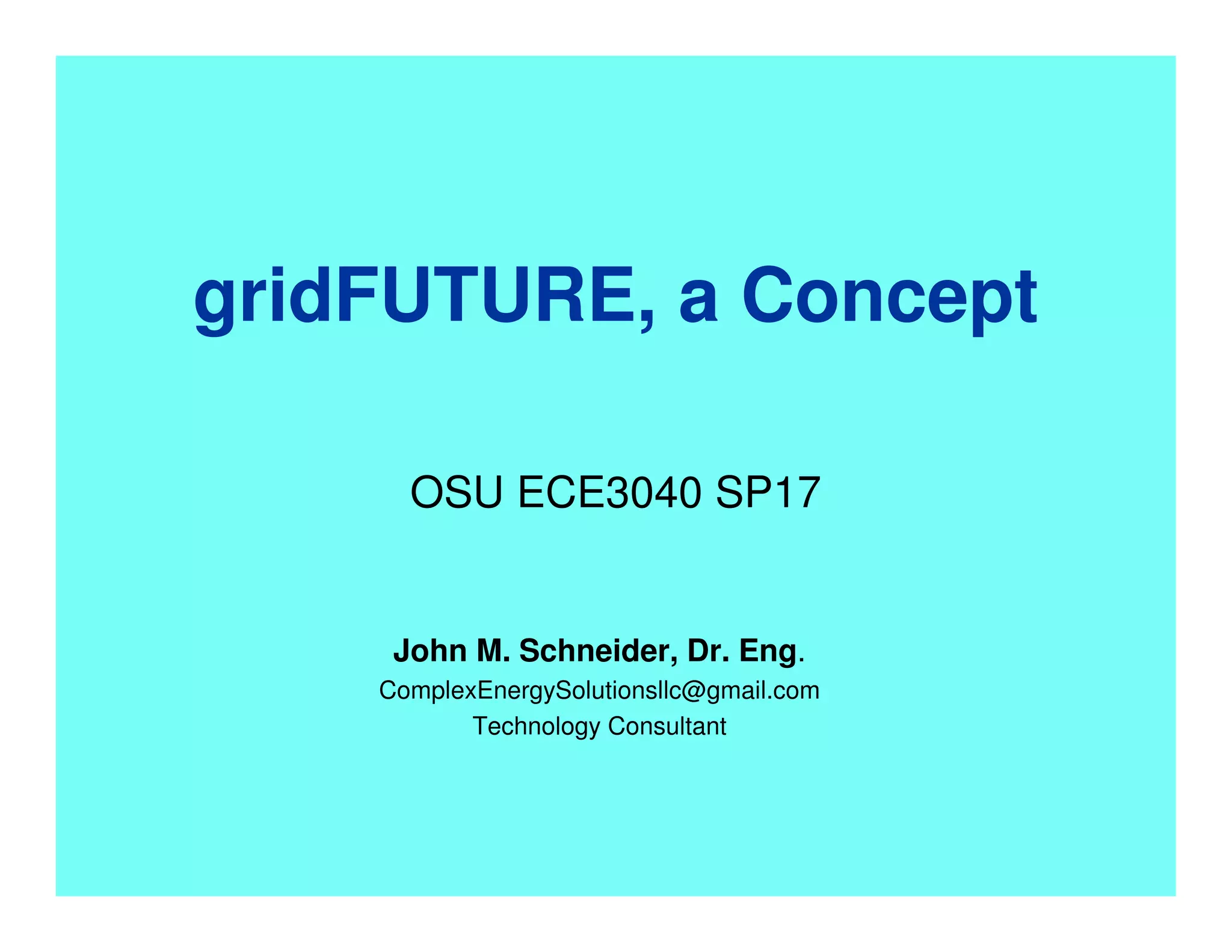 The document presents a vision for a future electrical grid called gridFUTURE. It describes gridFUTURE as: