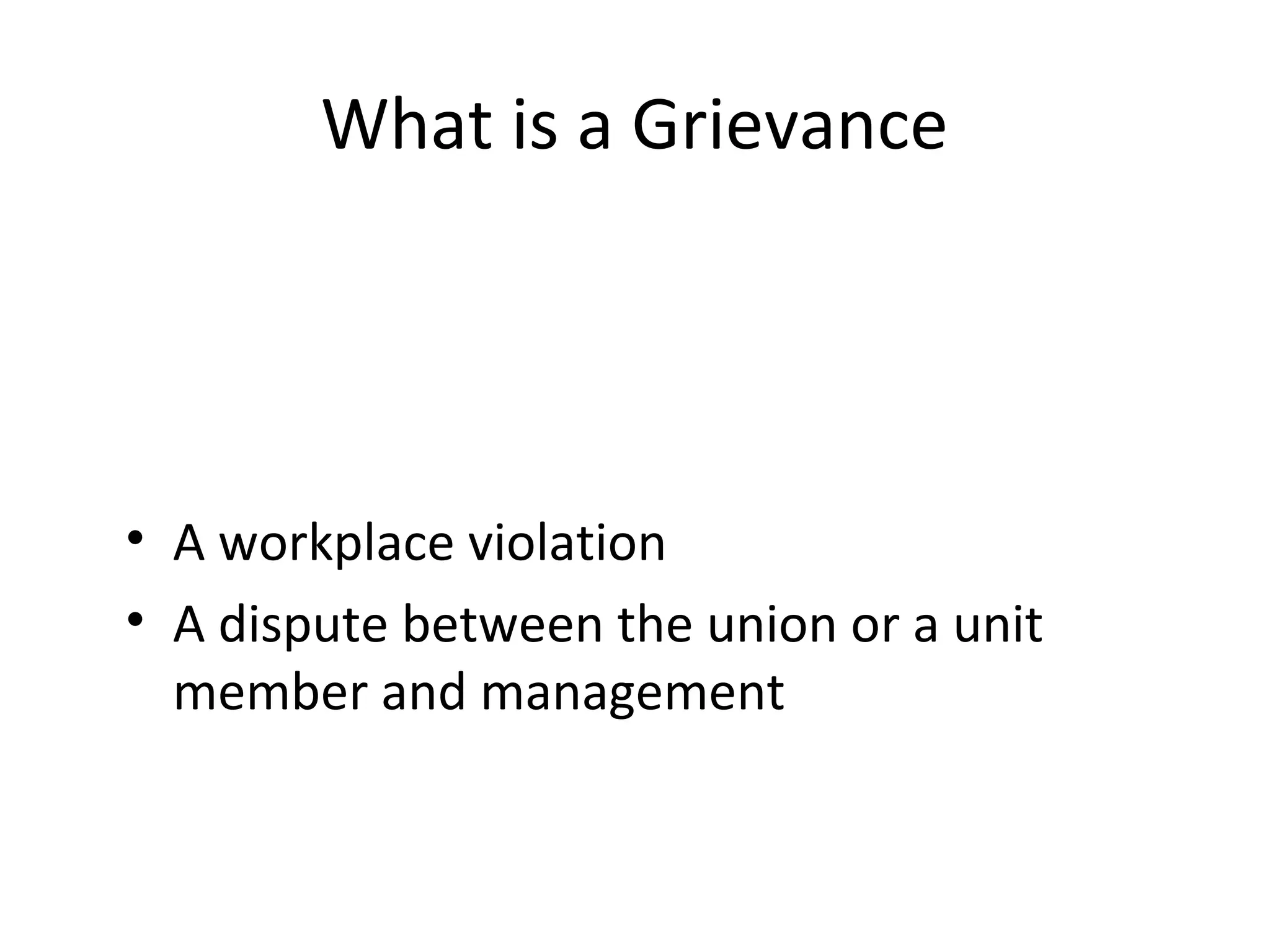 Grievances arise from disputes between employees and management over violations of contracts, laws, policies or past practices. Common causes of grievances include issues with promotions, amenities, services, fines, compensation and more. The grievance process involves defining the situation, contention and remedy in writing. Grievances are addressed through informal and formal levels that may include meetings with supervisors, written submissions, and appeals up to board level. Proper grievance handling requires prompt investigation, hearing from all parties, and adherence to contractual timelines and procedures.