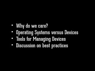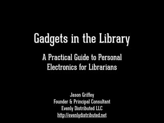 The document is a comprehensive guide on the integration of personal electronics and gadgets into library services, discussing the evolution from traditional to modern devices in the library setting. It covers the management of various operating systems (iOS, Android) and the rise of wearables, while emphasizing best practices in circulation and policy for technology use. Additionally, it highlights trends in the post-PC era and the future potential of wearable computing in educational environments.