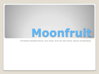 MarketingJuni 2009: intensievecampagne op TwitterVeel mensen in 1 keer bereikenMoonfruit 10 jarig bestaan: grote wedstrijdIedere dag MacBook Pro te winnen gedurende 10 dagen"#moonfruit“ op twitteraccount plaatsen5